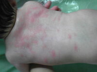 お風呂上がりは特に目立つのですが背中のこの赤いのは 乳児湿疹ですか 顔のブツブ Yahoo 知恵袋